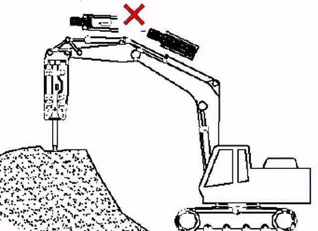 当物体被破碎之后,立即停止破碎锤工作,防止空打。挖掘机破碎锤在空打的时候,活塞将冲击力传输给钢钎,钢钎将冲击力转移给钢钎销,钢钎销在承受强大冲击力的时候就容易断裂。持续空打将对破碎锤、主机工作装置等造成严重损坏。