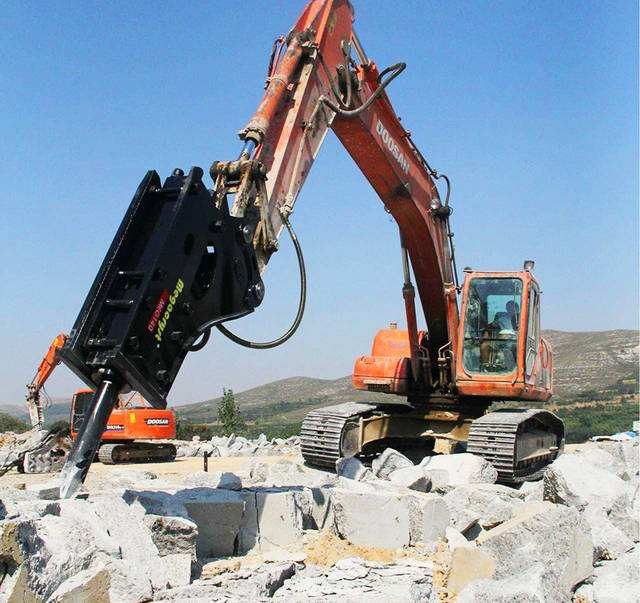 破碎锤的工作环境很恶劣,在平常的使用中要注意日常的维护。取下钎杆后,经常检查下缸体内易损件的磨损状况,并检查活塞、钎杆打击面、钎杆、内外套等。