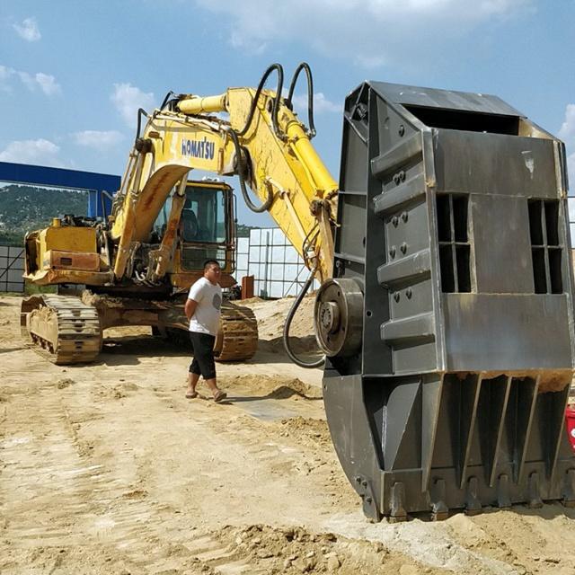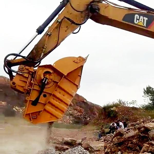 移动式破碎斗通常安装在挖掘机上面,采用挖掘机液压动力,挖机驾驶员在驾驶室内通过操作脚踏阀对粉碎铲斗进行控制,依靠上下颚板的强力夹击破碎石料;广泛运用于矿山冶炼、建材、公路、铁路、水利和化工等行业中各种矿石与大块物料的破碎。